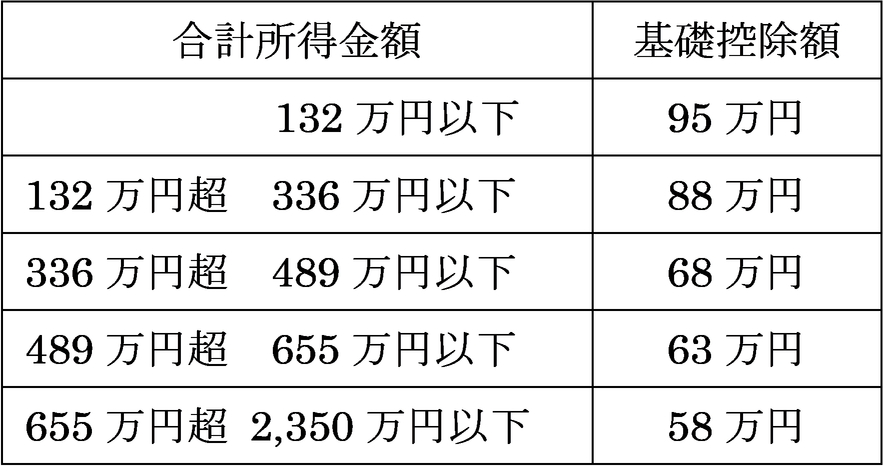 従来の基礎控除額は、合計所得金額★1が2,400万円以下の場合に一律48万円とされていましたが、令和7年分からは最大95万円まで引き上げられ、特に令和7年分・8年分に限っては、右の表のように、合計所得金額に応じて段階的に引き上げるよう設定され、より幅広い所得層に減税効果が現れるようになりました。また、給与所得控除額も、給与収入が190万円以下の場合、最低保障額が従来の55万円から65万円へと10万円引き上げられました。