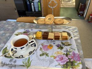 ↑市販のクッキーとミニケーキを並べて一人アフタヌーンティー開催