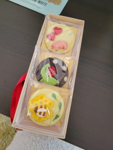こちらはいただきものなのですが、箱を開けた瞬間に、思わず「わぁ!」と声を出してしまいました。すっごく可愛いですよね。特にハチさんがお気に入りです。
